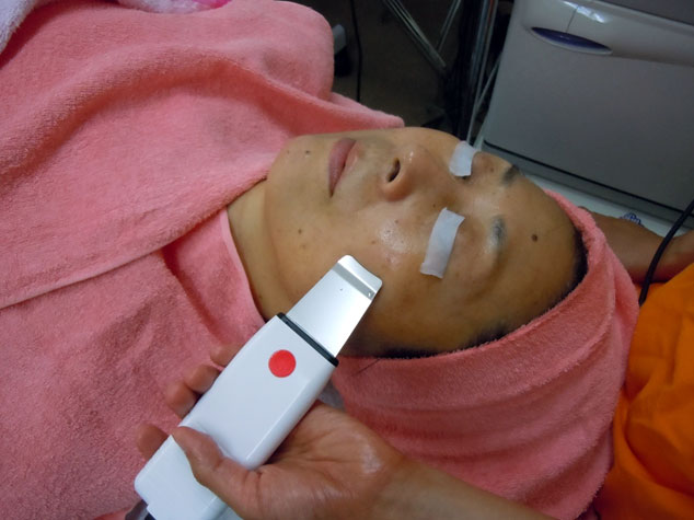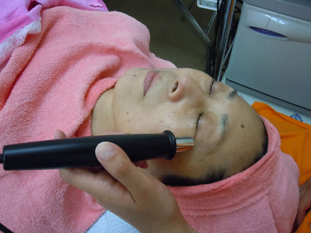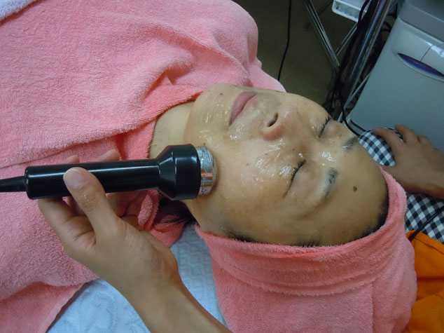 注射針を使わないでコラーゲン・ヒアルロン酸を皮膚に送り込みます。